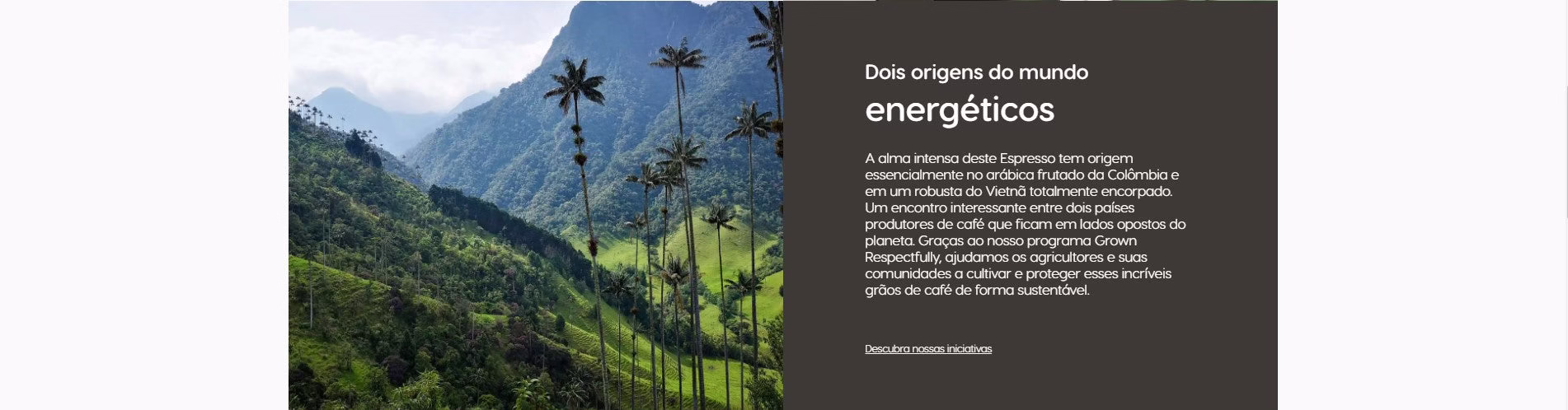 O sabor brasileiro de um café produzido de forma orgânica nas montanhas do Sul de Minas Gerais, com grãos 100% Arábica, notas adocicadas e delicadas, e um toque frutado. Um café para paladares especiais.