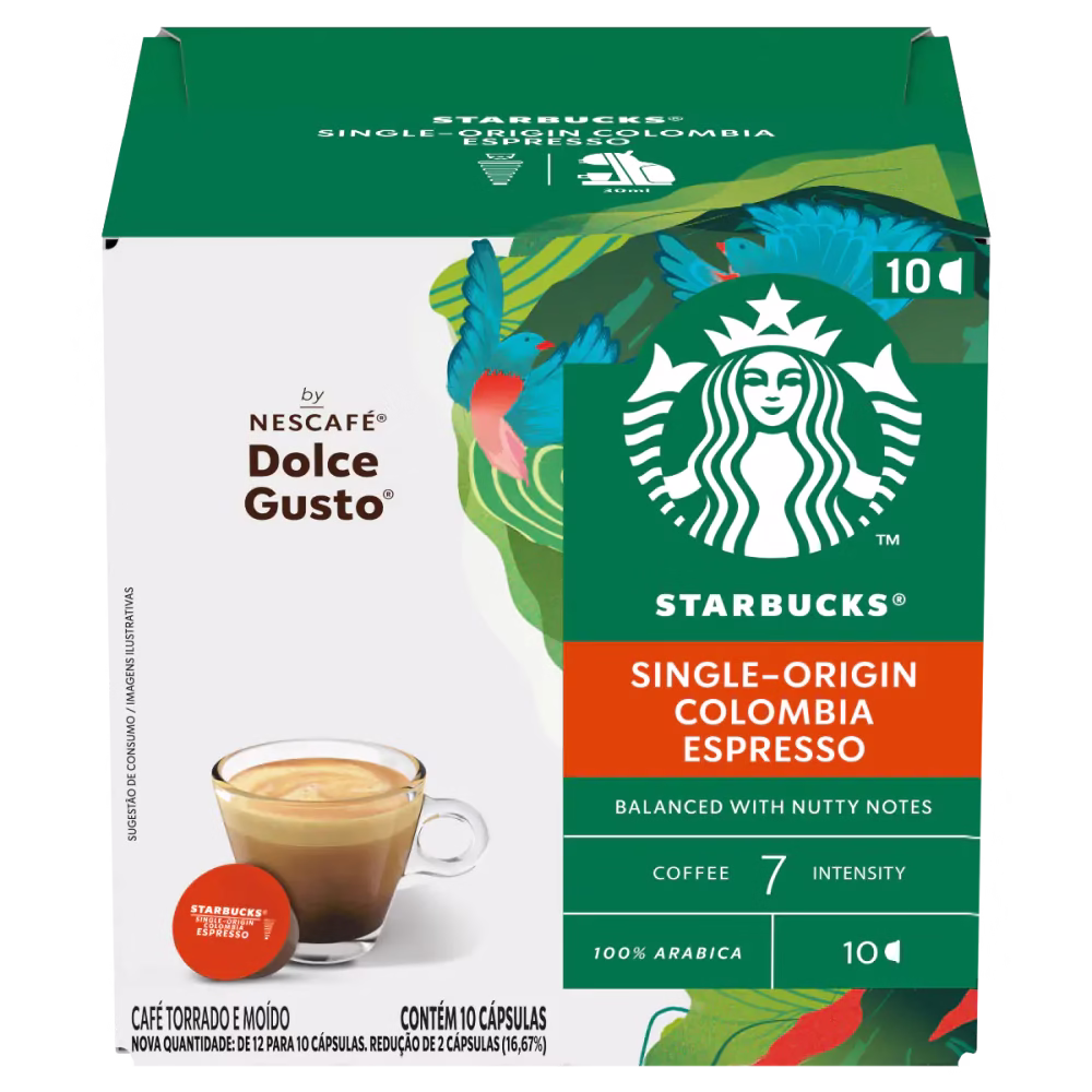 Beba e saboreie esta origem única da Colômbia, equilibrada, sabor suculento e final característico de nozes. STARBUCKS® Espresso Colômbia criado para as máquinas NESCAFÉ® Dolce Gusto®.