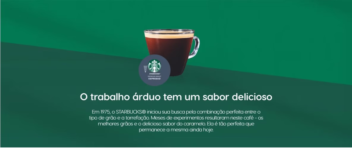 Descubra as notas ricas e caramelizadas do STARBUCKS® Espresso Dark Roast, o café presente nos famosos lattes da marca. Você vai adorar a intensidade desse café único, pronto em apenas alguns segundos com a sua máquina NESCAFÉ® Dolce Gusto®.